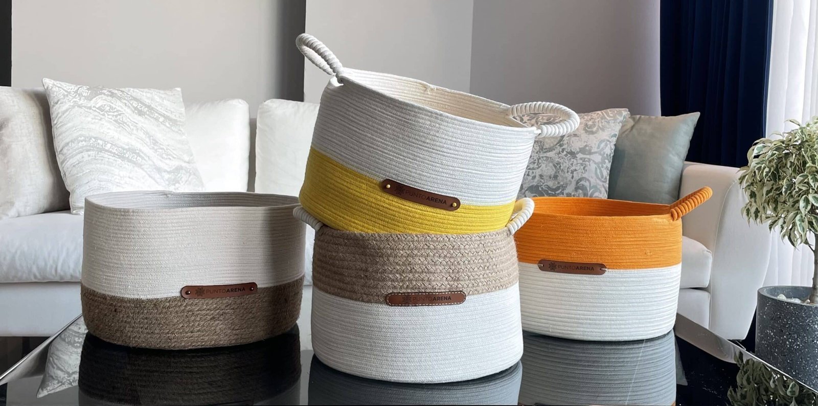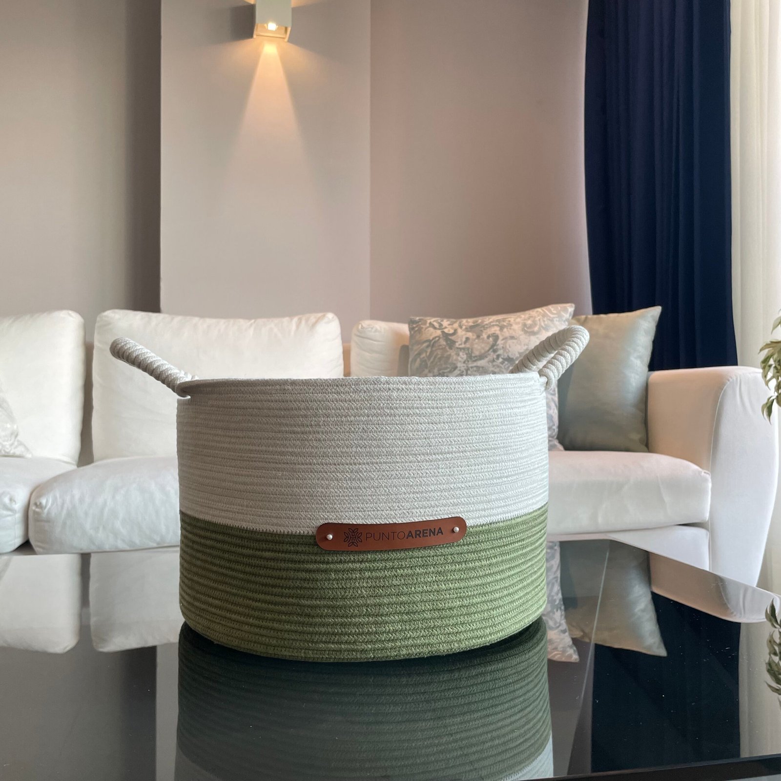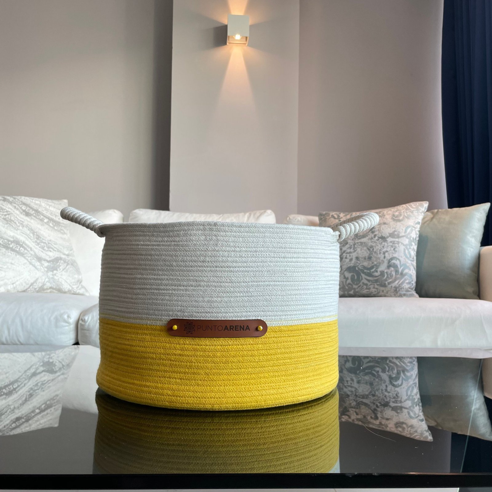 Canasto redondo tejido a mano con estructura metálica. Medidas: 40cm x 40cm y 35cm x 35cm. Lavado en seco en lavandería. Composición: estructura metálica, tejida con material textil recuperado. Devolución: Todos los productos de punto arena podrán ser devueltos en un plazo máximo de 30 días siempre y cuando no hayan sido usados y presentando la factura de compra.
